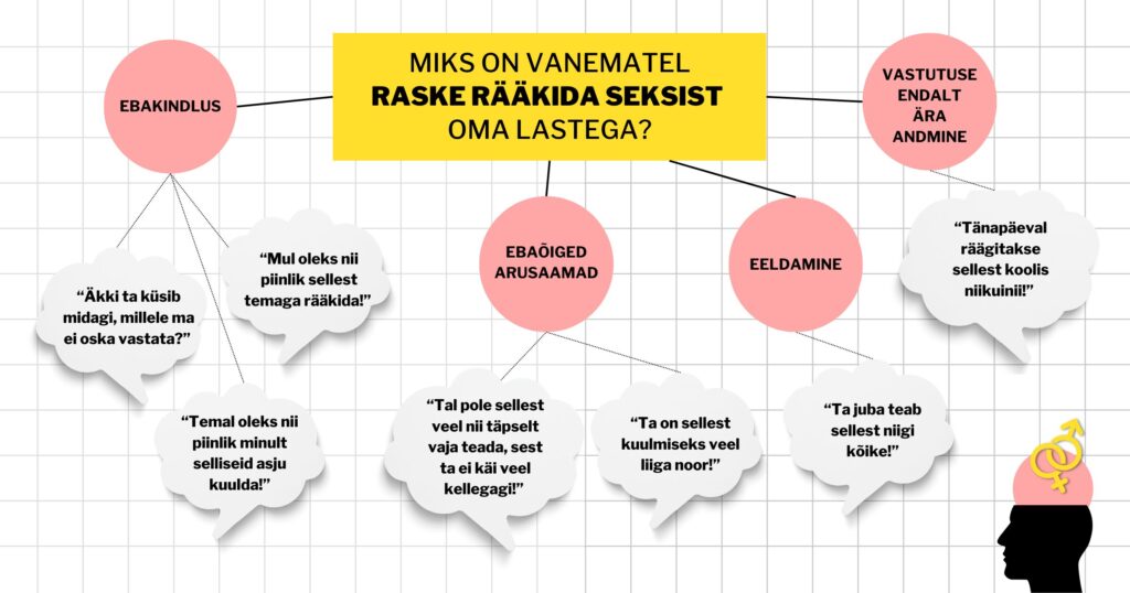 Enne kui anda kellelegi nõu oma lastega eakohasel viisil seksist rääkida, tasub aga uurida põhjuseid, miks seda siis ikkagi ei tehta. Loodetavasti aitab järgnev diagramm analüüsida nii enda hoiakuid kui olla toeks teistele lapsevanematele, et innustada neid oma lastega pidama eakohaseid ja sisukaid vestluseid ka seksuaalsusest.