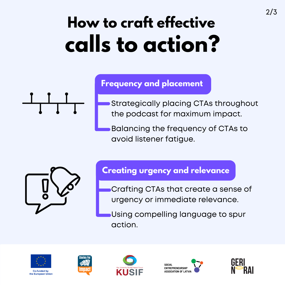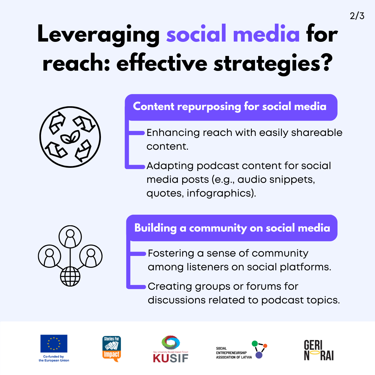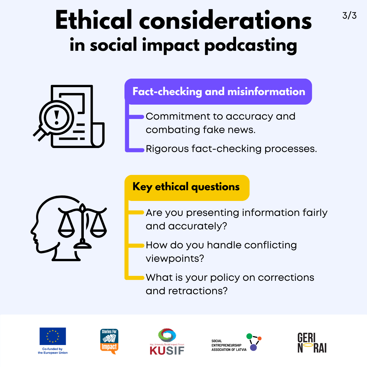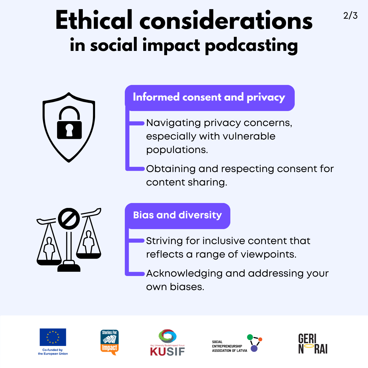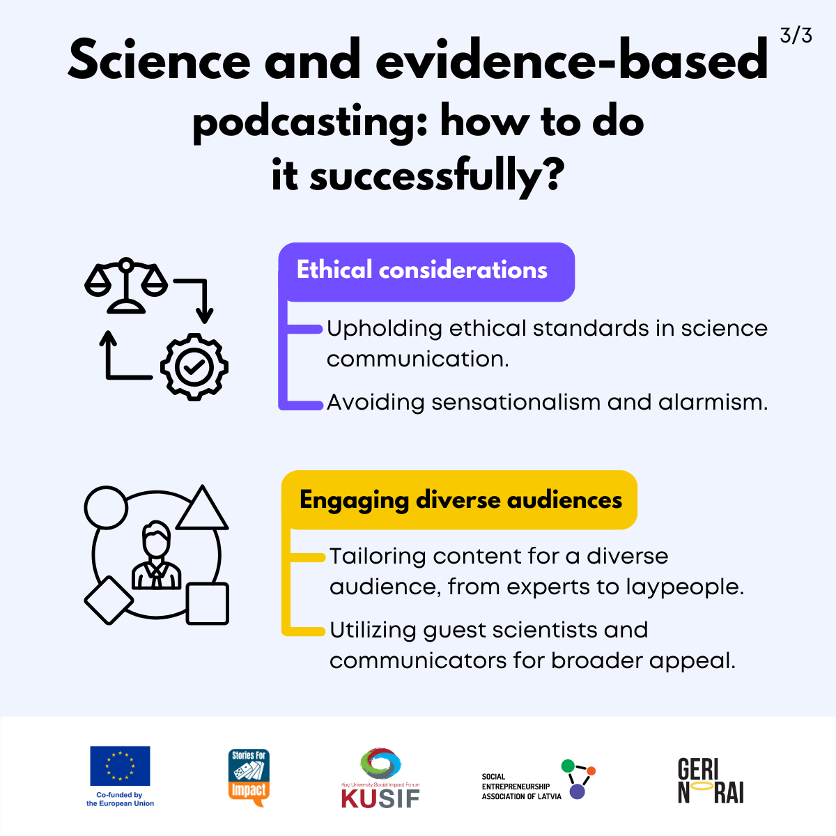 Here, we have created several visual materials with information you can use to start your own social impact podcast. You can study them and write down your thoughts, plans, etc., but to get the most out of it, we recommend you discuss them with a friend or a colleague and create at least one actionable item per studied material, as well as set a time when you’re going to execute it.