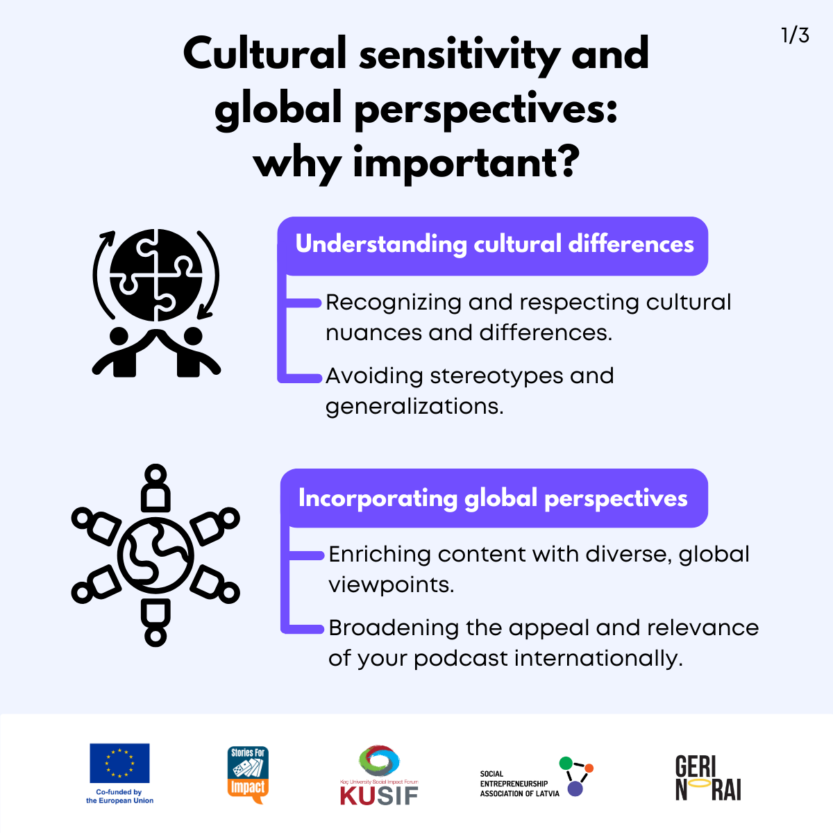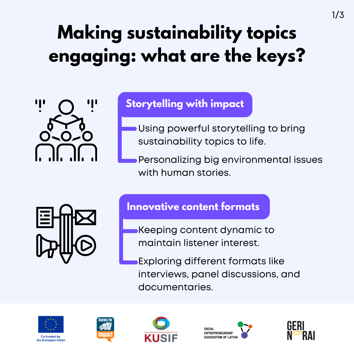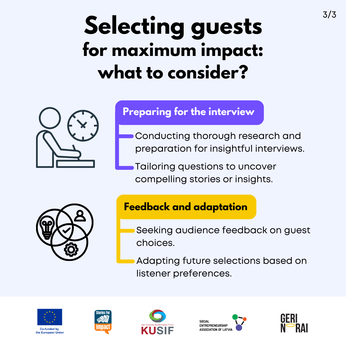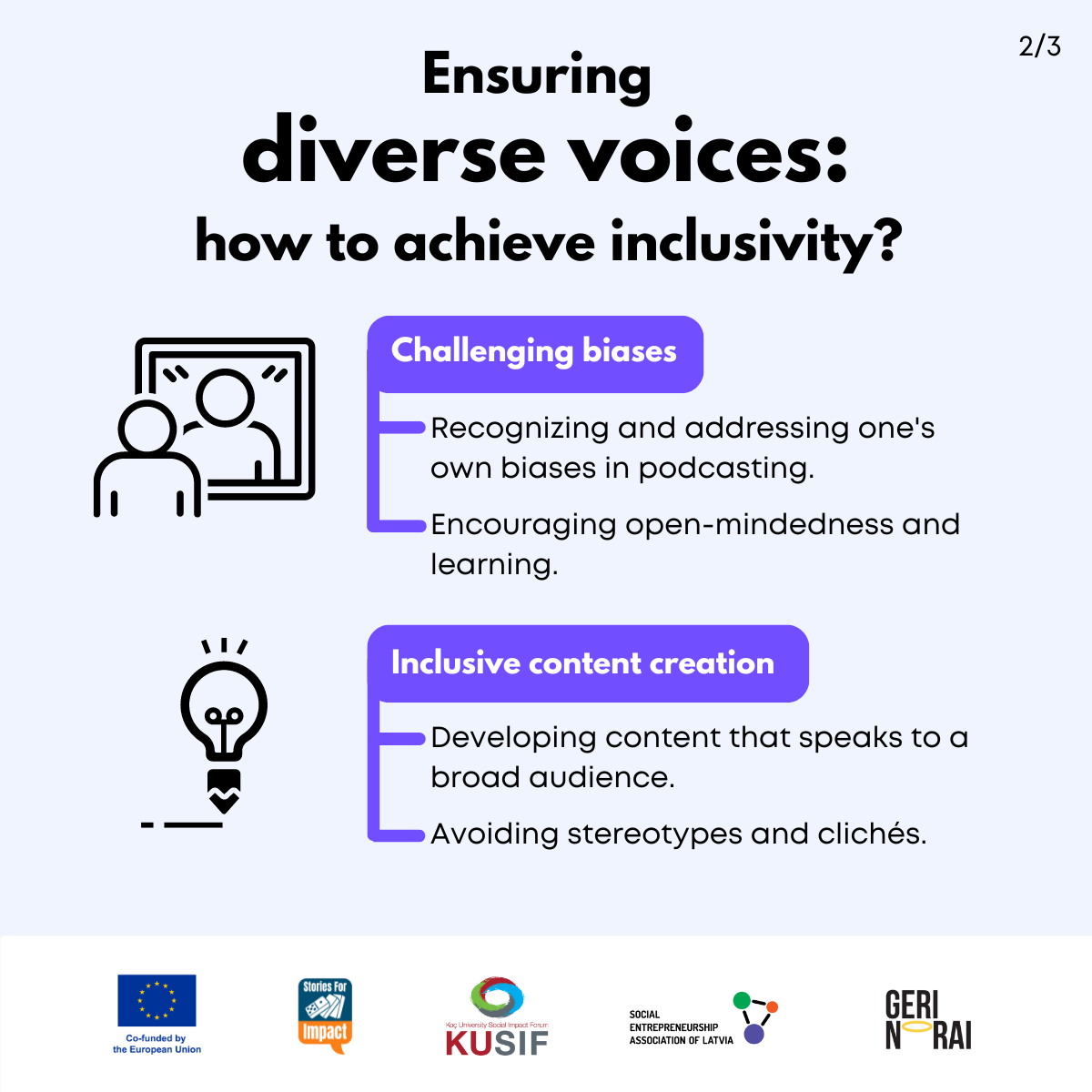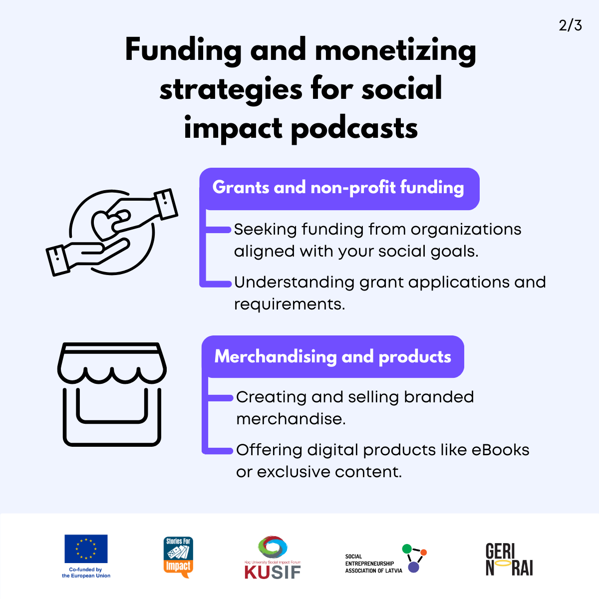 Here, we have created several visual materials with information you can use to start your own social impact podcast. You can study them and write down your thoughts, plans, etc., but to get the most out of it, we recommend you discuss them with a friend or a colleague and create at least one actionable item per studied material, as well as set a time when you’re going to execute it.