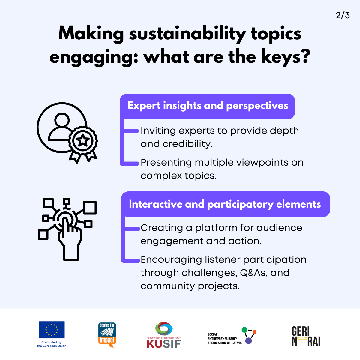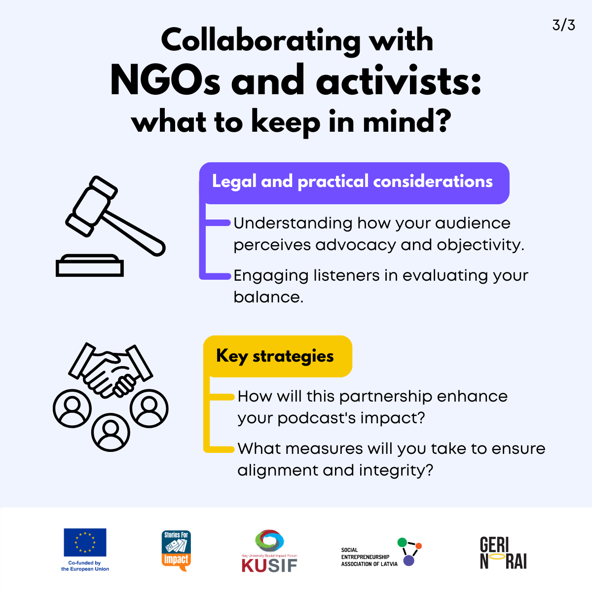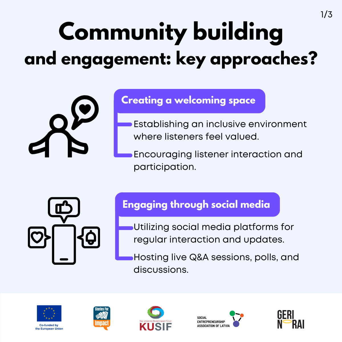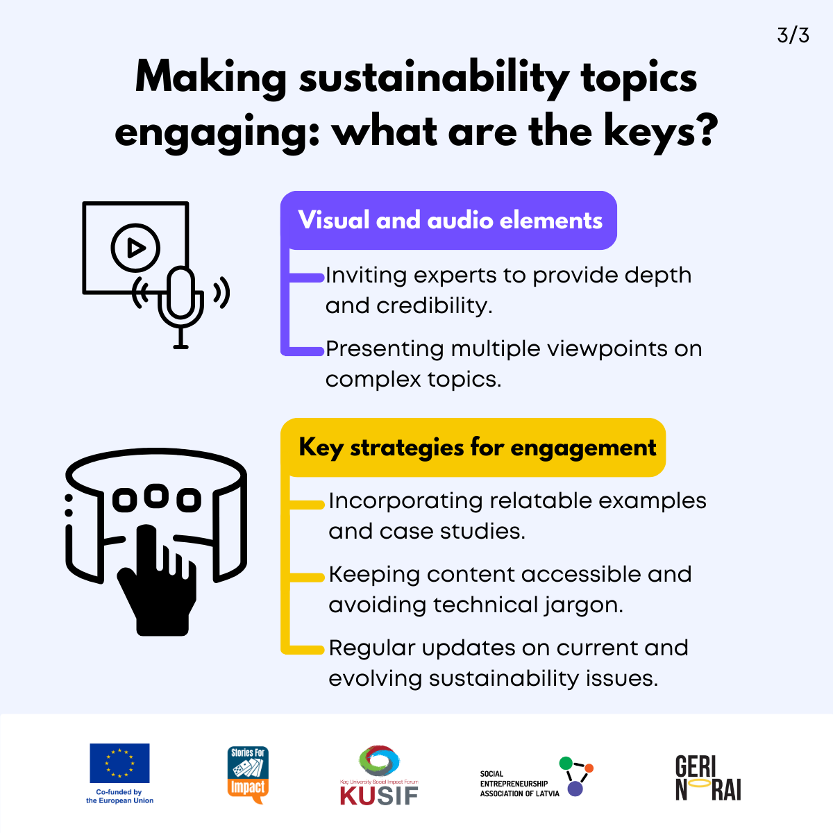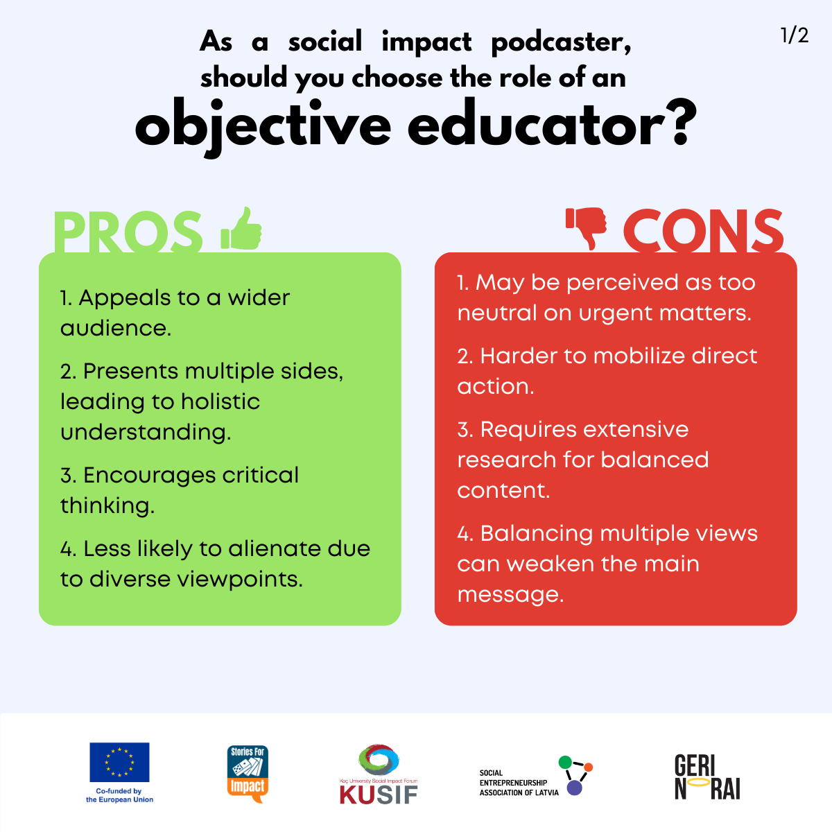 Here, we have created several visual materials with information you can use to start your own social impact podcast. You can study them and write down your thoughts, plans, etc., but to get the most out of it, we recommend you discuss them with a friend or a colleague and create at least one actionable item per studied material, as well as set a time when you’re going to execute it.