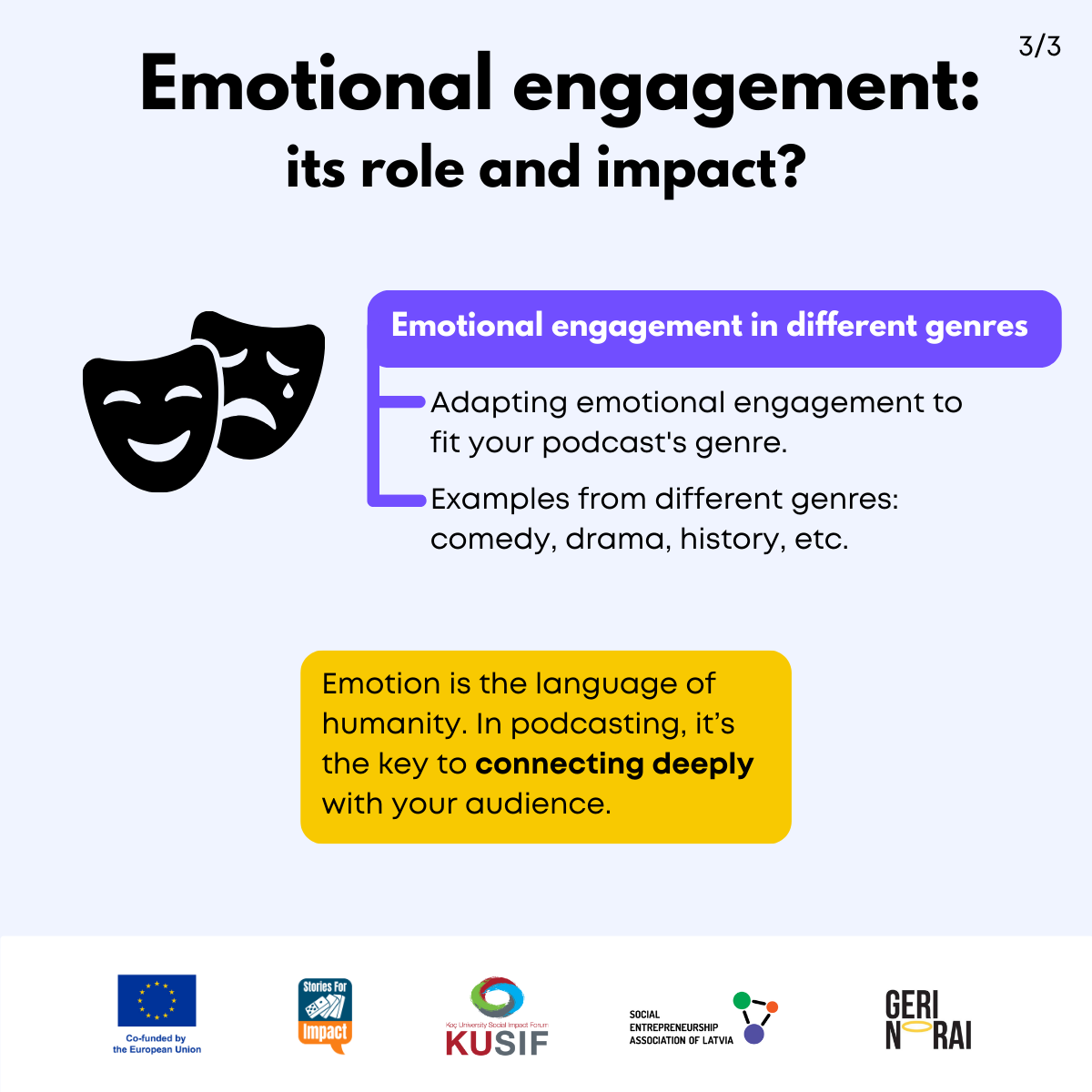 The international project “Podcasting-based social impact learning environment” is co-funded by the Erasmus+ programme implemented by the European Union. NB: The materials do not reflect the official views of the European Commission.